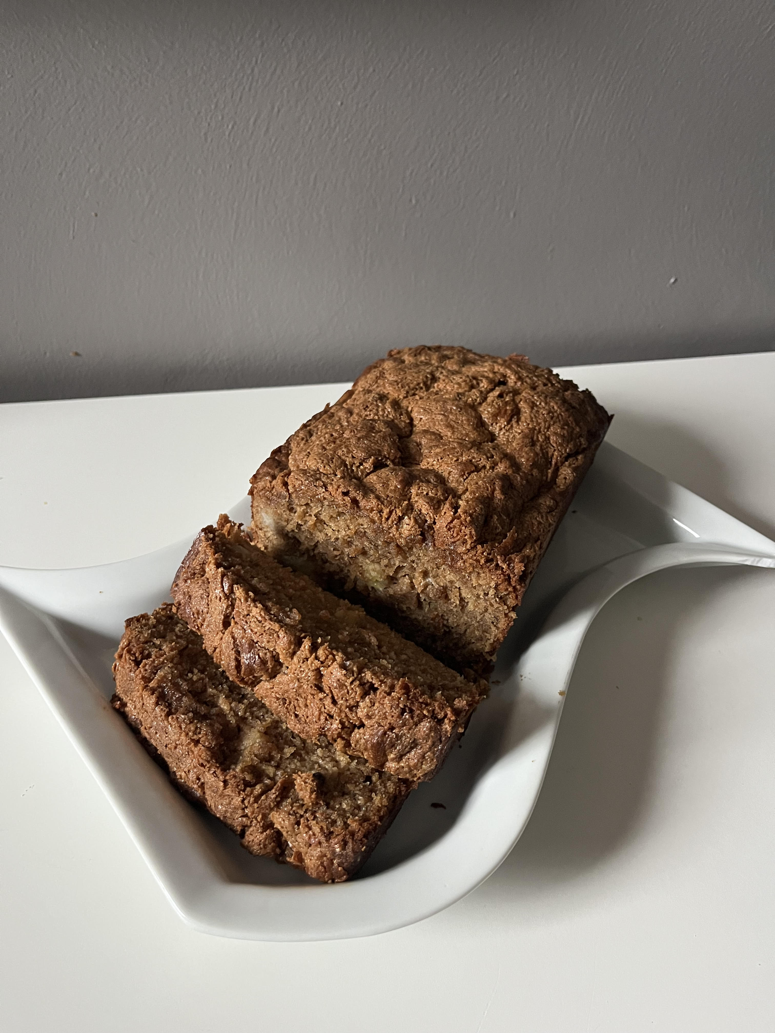 Childhood mixed with elevated flavors. A rich and decadent loaf that combines the flavors of caramelized sweet bananas with rich almond butter. Completed with chunks of bananas and topped with an addicting crunchy, almond butter sugary topping.